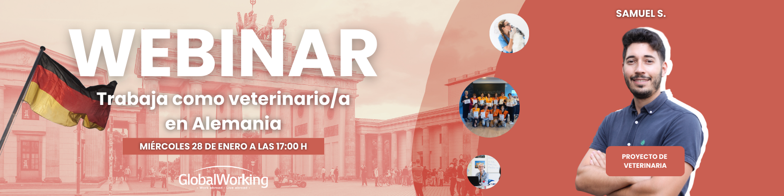 Te invitamos a nuestro webinar el 28 de enero a las 17:00h, donde descubrirás cómo es aprender alemán en Global Working y cuáles son los pasos para trabajar en Alemania como veterinario/a.